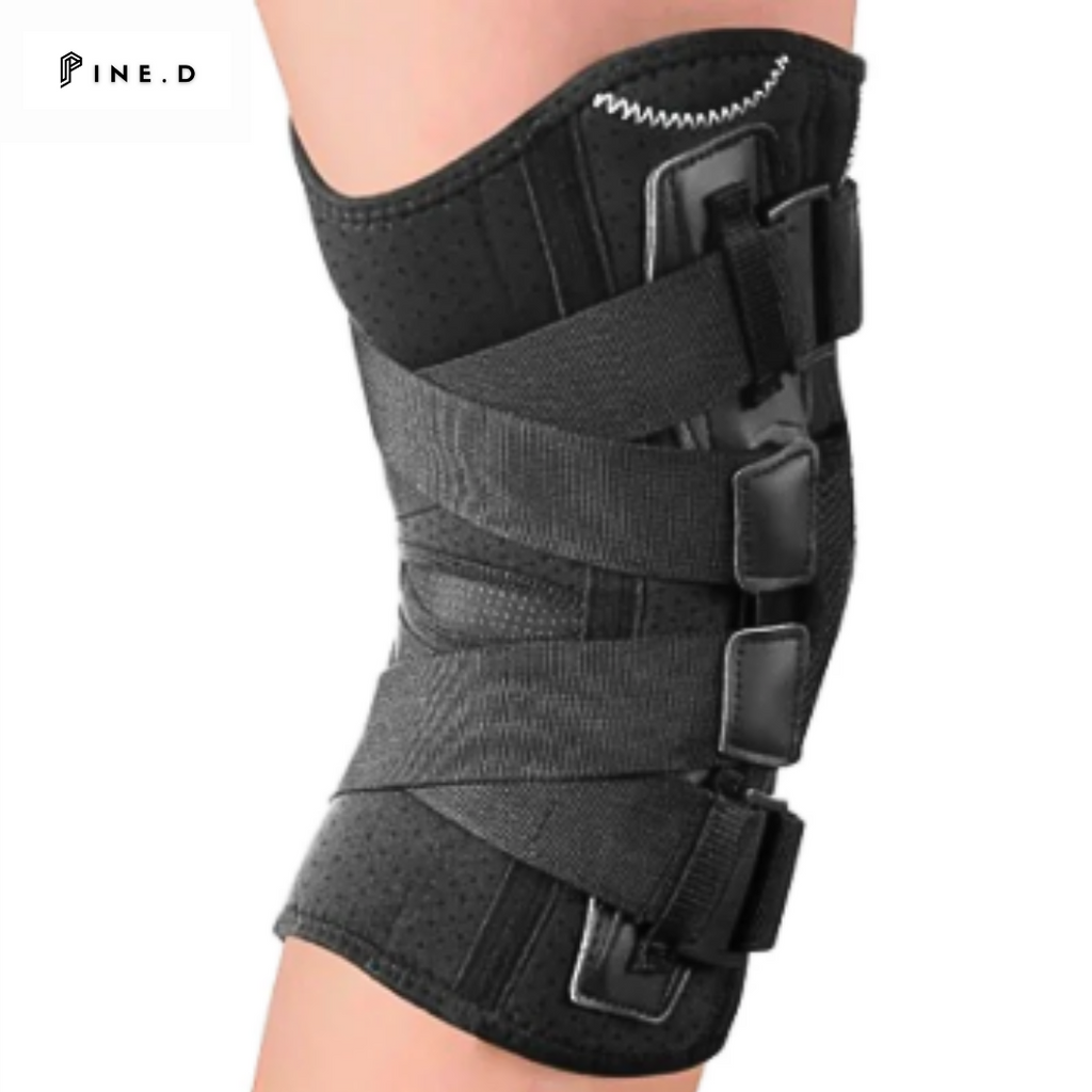 Suas duas hastes em metal nas laterais tem função de dar proteção aos ligamentos, manter o joelho firme e seguro contra torções.